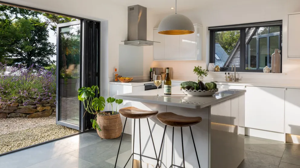 A coastal haven two miles from Padstow and a short stroll away from Trevone Beach, Samphire is the ideal family retreat with sparkling sea glimpses.